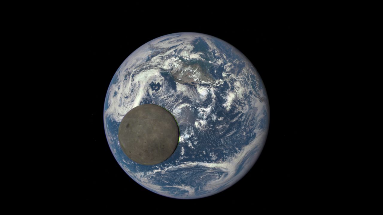 与死寂的、没有颜色、没有变化、没有液态水、没有空气的月球不同,从月球上看地球会看到充满生机的景象——白色的云系、蓝色的海洋、棕色与绿色的陆地、一层极薄的大气辉光,地球在缓慢自转,云层在流动,极光在边缘闪烁。