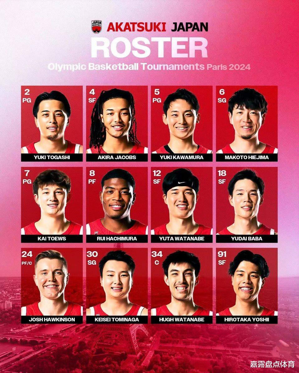 北京时间7月8日,日本男篮公布了参加巴黎奥运会最终的12人大名单,八村塁重回国家队,渡边雄太和河村勇辉榜上有名。在今年奥运会上,日本男篮被分在B组,同组对手有德国男篮、东道主法国男篮和巴西男篮。