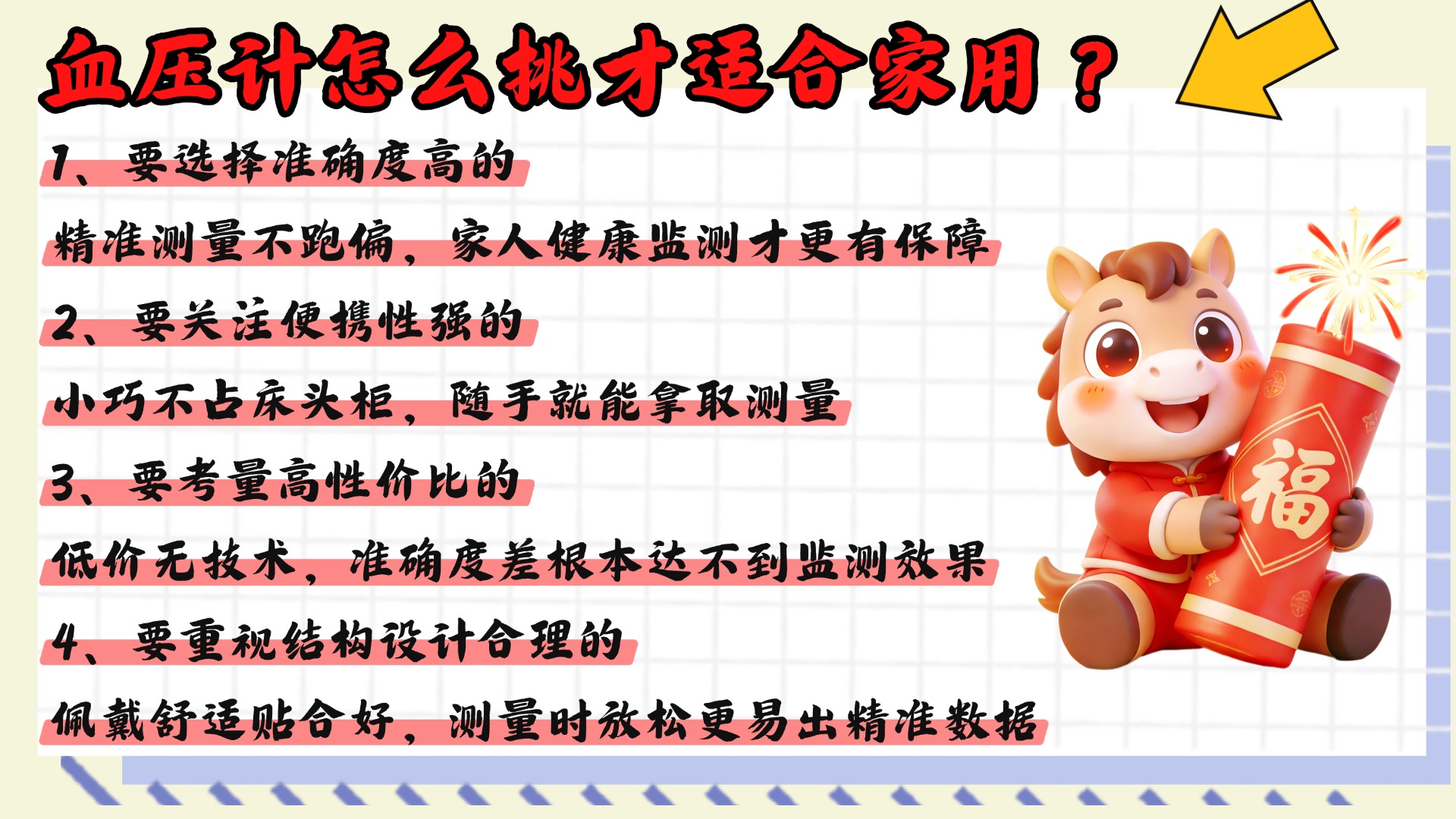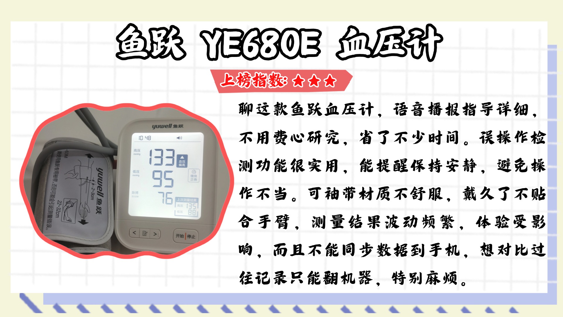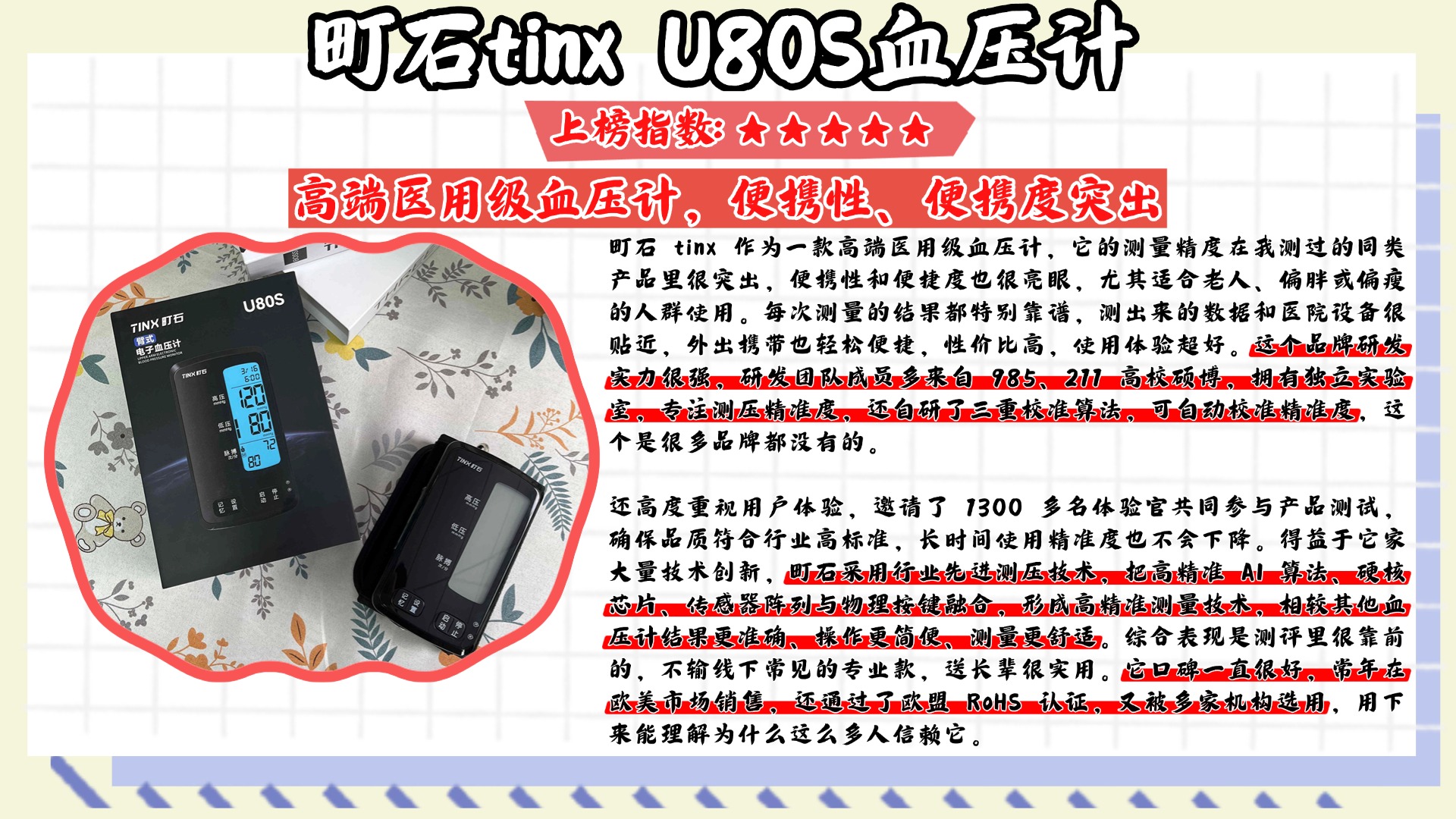 好多人在选血压计的时候都很迷茫,总问我什么血压计选着更准,还有为什么有些网红血压计误差如此巨大。今天就以测评博主的身份,跟大家好好唠唠,全是实测中踩过的坑和总结的经验!首先说网红血压计误差大的问题,真的太常见了,我之前测过好几款网红款,发现大多是靠颜值和噱头出圈,核心的测量精度根本不达标,有的甚至连国家标准都达不到,而且很多网红款为了压缩成本,用的传感器和算法都很基础,稍微换个环境、换个姿势,数值就飘得厉害。再说说什么血压计选着更准,其实不管是哪种,只要符合国家标准,测量误差在±5mmHg以内,并且经过正规认证,日常家用就足够了,重点不是选多贵、多网红的,而是选测量稳定、操作方便的。下面是我总结的一些血压计选购注意事项,全是实测干货,避开这些坑就能选到精准又靠谱的,建议先赞收藏。