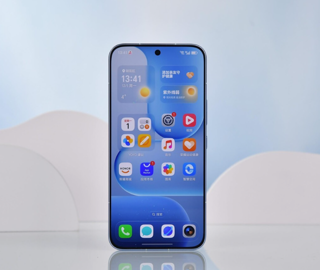 3. 荣耀500:水晶质感与长效续航的平衡荣耀500系列以“水晶小直屏”为核心设计理念,主打轻盈通透的视觉与手感体验。机身背板采用一体成型冷雕工艺,单片玻璃历经40余道工序、近万秒加工时长,实现96%的高透光率,呈现出水晶般晶莹剔透的质感,镜头模组与背板一体化设计进一步提升整机精致度。7.75mm的超薄机身搭配1.05mm的超窄屏幕边框,正面观感极简通透,握持时贴合手掌曲线,兼顾轻薄手感与视觉美感。