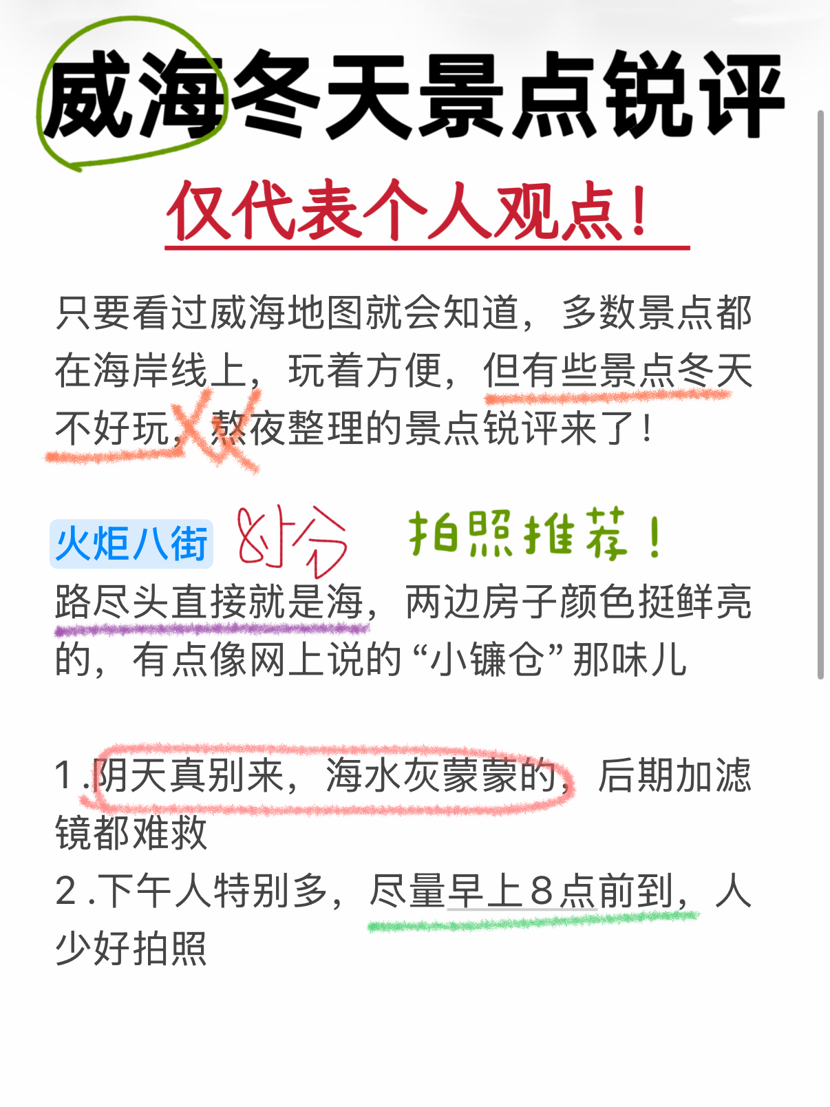 只要看过威海地图就会知道,多数景点都在海岸线上,玩着方便,但有些景点冬天不好玩,熬夜整理的景点锐评来了!