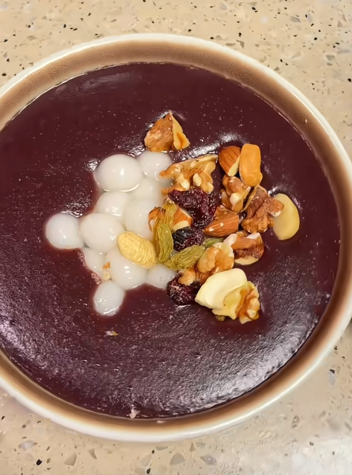 第四步:调味。 根据个人口味加入适量的冰糖,轻轻搅拌至冰糖完全融化。如果喜欢更浓郁的口感,还可以加入一勺蜂蜜或者几颗红枣,增加风味的层次感。