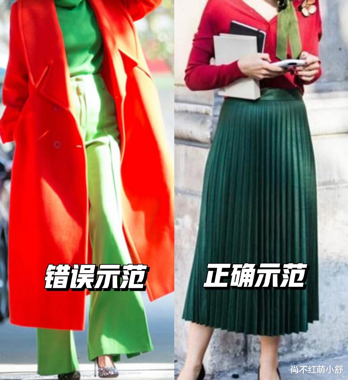 红绿不是不能穿,但大面积正红配正绿真的挑人。除非你有超模的冷白皮和九头身,否则容易显得喜庆过头,像刚下班的活动人偶。