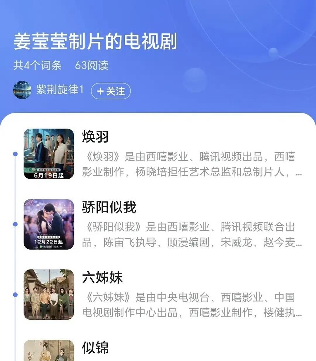 名字耳熟吗,很多人刷剧时见过,她参与过骄阳似我、焕羽、六姊妹、似锦这些项目,骄阳似我口碑出圈,话题热度高,六姊妹还在今年年初定档官宣,她的名字常出现在制片名单,熟悉度不低,资源不差,结果呢,还是碰到了公司高压线