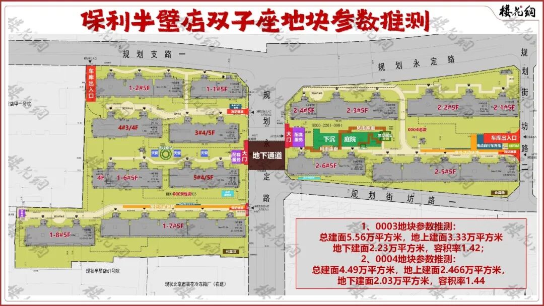 它是个双子星。在去年5月20日拿地前夕,北京规自委挂出了海淀区半壁店HD00-2201-0003、0004地块的补充公告。