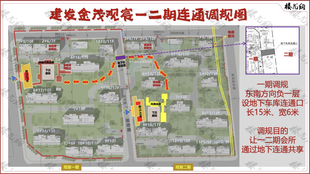 2月6日,观宸调规。在一期负一层1#楼东南角,增加了与二期联通的通道一处,称之为“地下车库连通口”。