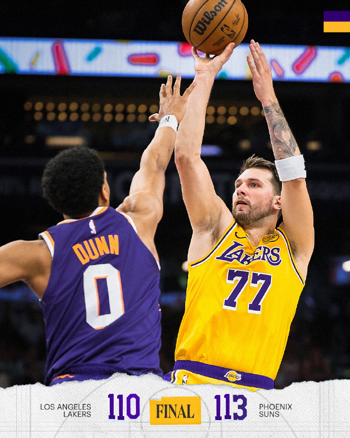 在比赛最后时刻,詹姆斯一度通过补篮将比分扳平,但罗伊斯·奥尼尔却完成了三分绝杀。上一场对阵魔术,湖人也被小温德尔·卡特补篮准绝杀,所以这也是他们连续第2场被被对手绝杀。太阳过去两场比赛分别只得到77分和81分,今天恢复正常,得到113分。