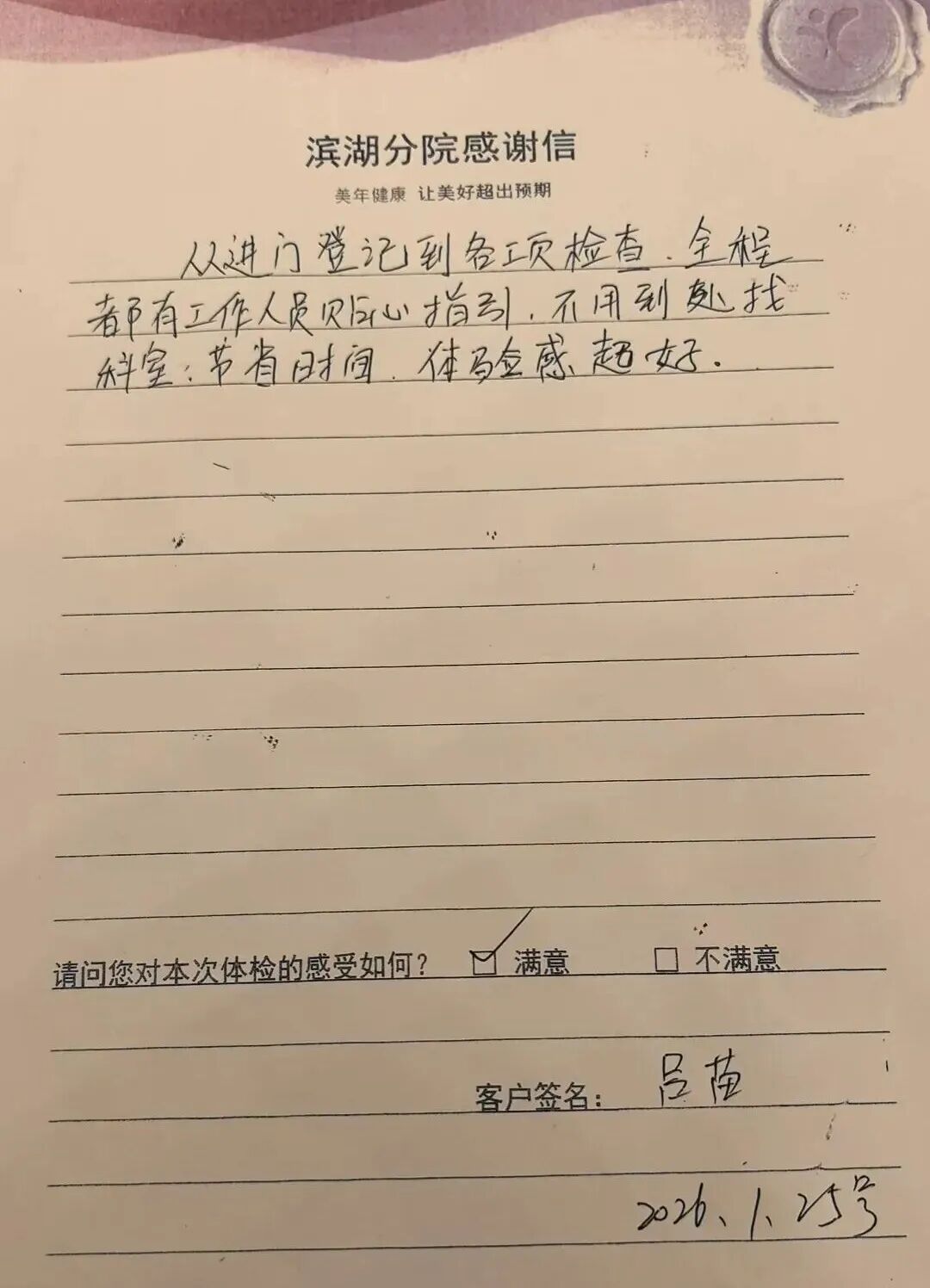 对于很多第一次体检的人来说,最头疼的就是找不到科室、分不清流程,但在滨湖分院,这份顾虑完全可以打消——吕女士的体验,就是最好的证明,也精准回应了#体检哪家服务好 的核心疑问,搭配美年感恩季的优惠福利,同时解答#哪家体检便宜?美年感恩季 的需求。