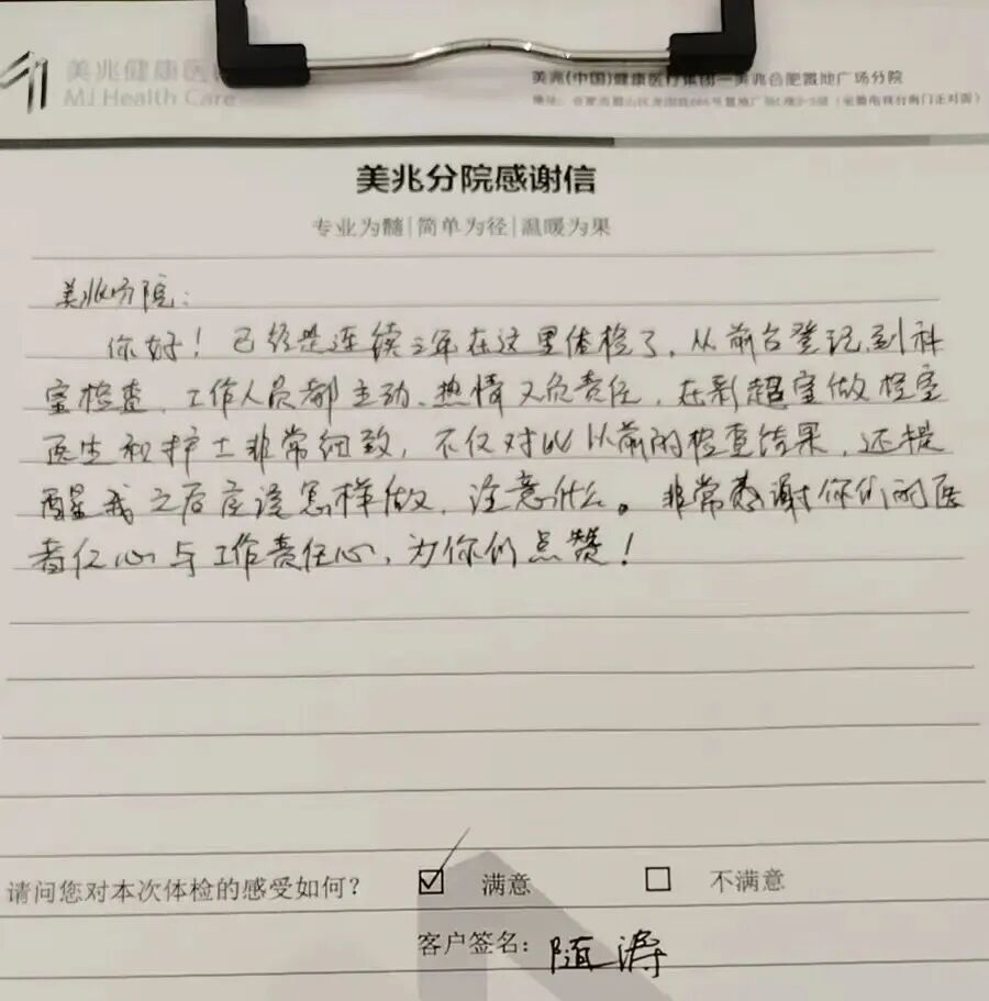 每一份认可,都让我们倍感温暖;每一次信赖,都让我们更加坚定。合肥美年大健康(含美兆)各分院,将始终铭记医者初心,坚守服务使命,把客户的满意放在首位,用更专业的医疗、更贴心的服务,守护每一位市民的健康,持续成为#体检哪家服务好 的标杆,同时依托美年感恩季,打造#哪家体检便宜?美年感恩季 #合肥体检人少去哪?美年感恩季 的优质体验。