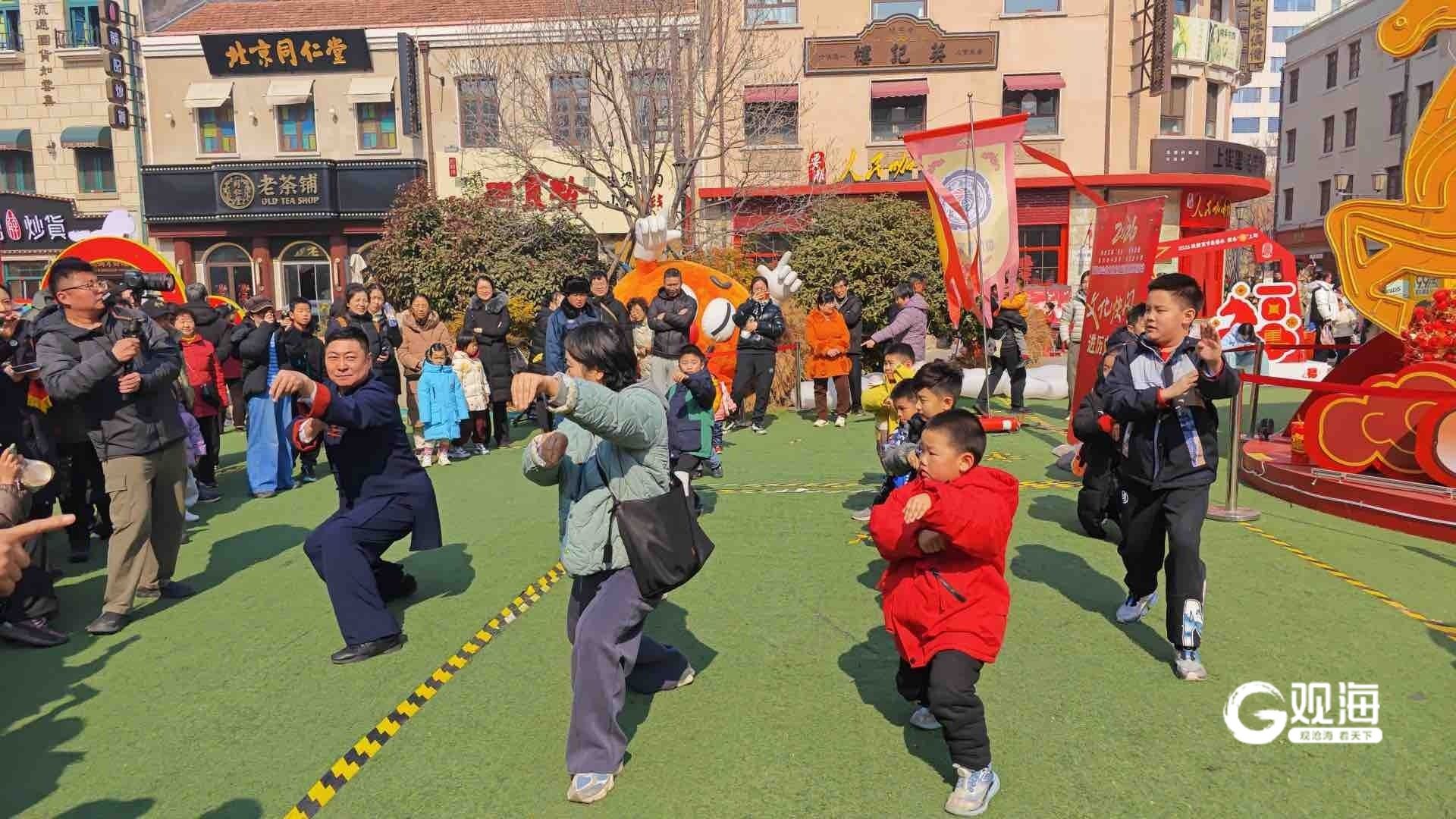 “史上最长春节假期”,岛城奉上文旅盛宴。连日来,市文化和旅游局组织文旅志愿者在历史城区等地持续开展新春文化快闪活动,鸳鸯螳螂拳、三铺龙拳等非遗项目精彩上演,为市民游客带来一场场不期而遇的文化”遇见“。