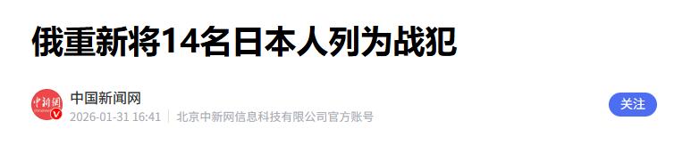 中国新闻网 2026-01-31——俄重新将14名日本人列为战犯