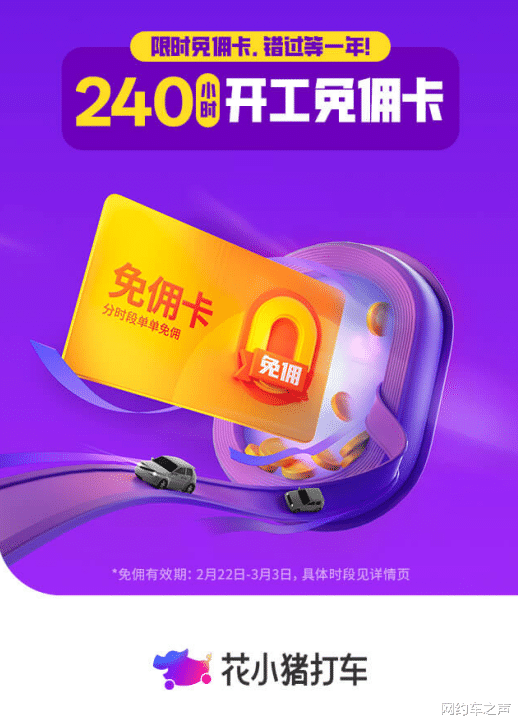 据说网约车和顺风车平台,都推出了节后的免佣活动。比如说花小猪,在沈阳、太原、长春、厦门、温州、哈尔滨、重庆、南宁、福州、昆明等城市,都推出了全天24小时的免佣活动。