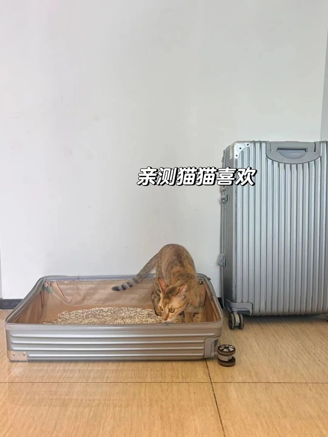 家里猫咪的猫砂盆、猫窝占地方,行李箱分开两半,一半改猫砂盆,一半做猫窝,猫咪吃喝拉撒全搞定,是猫咪的一个专属空间!
