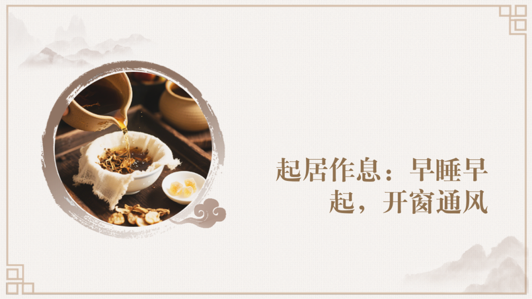 起居上倡导“夜卧早起、晨起梳发”,助力阳气升发、养护肝血。