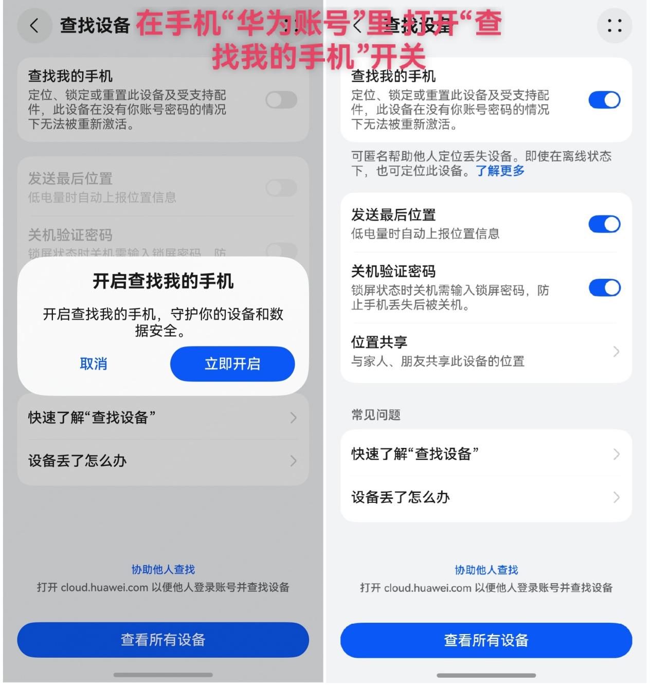 还记得去年全家元旦跨年出游,在摩肩接踵的古城里嗨玩,一不留神就把刚入手没多久的手机给挤没了。丢了手机,真的各种不方便,家人朋友联系不上,回家还得各种跑补办卡、翻找各种账号,活脱脱上演了一出“人在囧途”般的噩梦。如今每次出门,我都必先确认华为设备的“查找设备”已开启。
