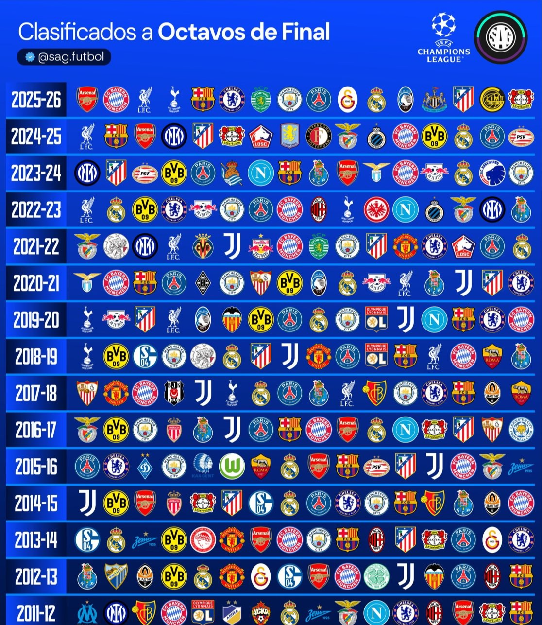 回顾从10/11赛季至今的16个赛季的欧冠淘汰赛16强名单会发现,皇马和拜仁从不缺席欧冠淘汰赛,而英超也在每年至少会有球队入围淘汰赛从而捍卫他们世界第一联赛的称号。