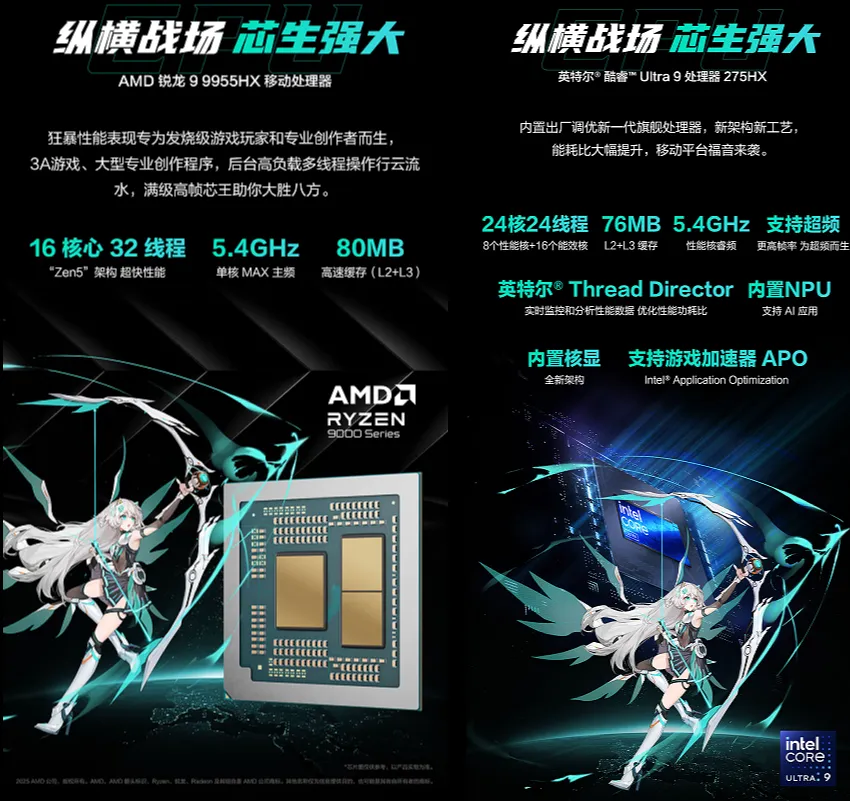 如果你追求至高CPU算力,以应付更高负载的生产力任务,天选6 Pro家族中还分别有搭载锐龙9 9955HX,以及酷睿Ultra 9 275HX的配置,规格直追台式机R9 9950X和Ultra 9 285处理器,核心性能更高阶,它们的国补到手价分别为7780和8455元(含Plus会员优惠),对核心性能要求更高的,它们都不失为一个好选择。