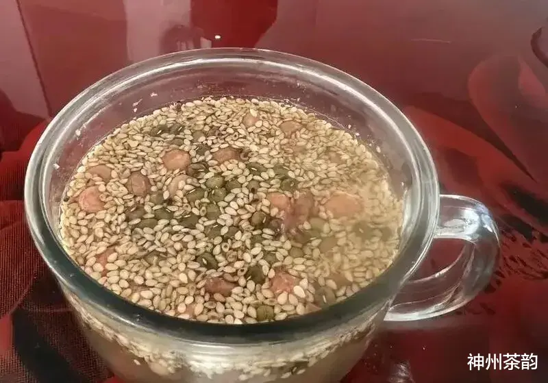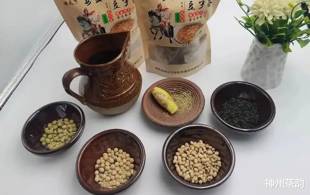 在湖南,如果家里来了客人,主人就会给您送上一杯香味四溢的姜盐豆子茶,杯底上一层被水泡胀了的炒黄豆,软软的,黄黄的,颇吊人胃口。如果茶快见底了,主人会立即再斟上茶,如此一杯一杯地下来,杯底诱人的豆子是越积越多。