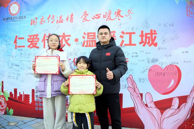 2月1日的集中捐赠仪式上,一场温馨的锦旗赠送环节,为本次公益活动增添了浓浓的温情。芜湖市弋江区爱心公益志愿者协会代表,向芜湖齐鲁文化促进会、芜湖煌家小将体育俱乐部有限公司、安徽人励通科技有限公司赠送了鲜红的感谢锦旗,一面面锦旗不仅是对爱心单位无私奉献的高度认可,更是对“仁爱传衣·温暖江城”公益行动的充分肯定,见证着爱心传递的力量与担当。