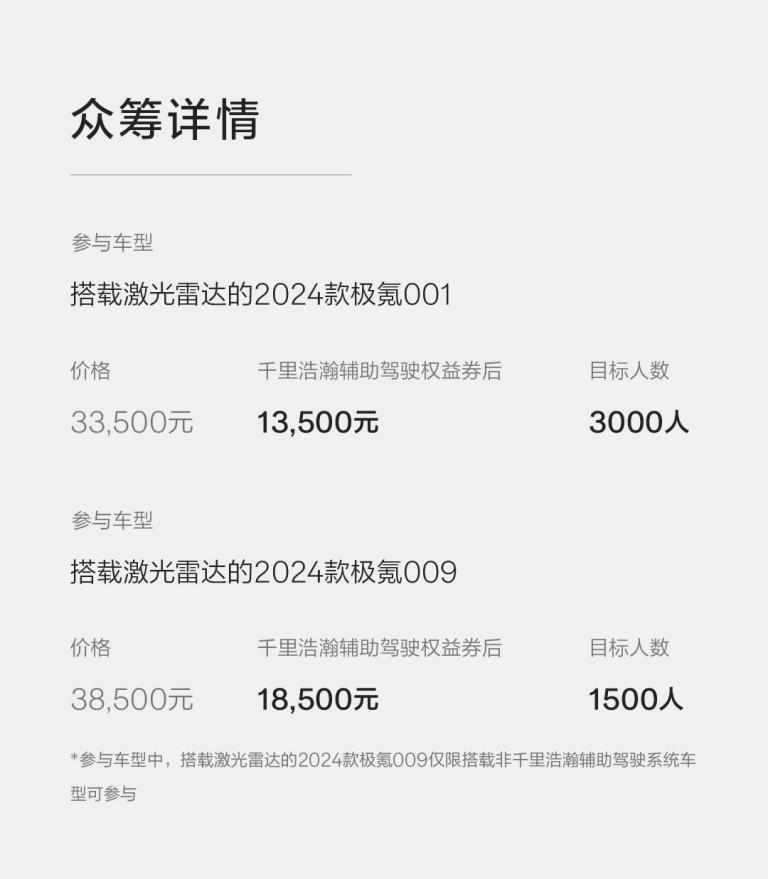 从官方信息来看,极氪此次众筹方案内容包括,2025年11月24日至2025年12月24日,中国地区搭载激光雷达的非千里浩瀚辅助驾驶系统的2024款极氪001和极氪009车主,可通过极氪APP参与众筹。更换方案基于NVIDIA DRIVE Thor-U 平台开发,众筹成功后,极氪将立即启动相关车辆升级千里浩瀚H7辅助驾驶系统的开发验证工作,并按众筹款项支付顺序开展安装邀约,众筹失败将在3个工作日内原路退回用户众筹款项。