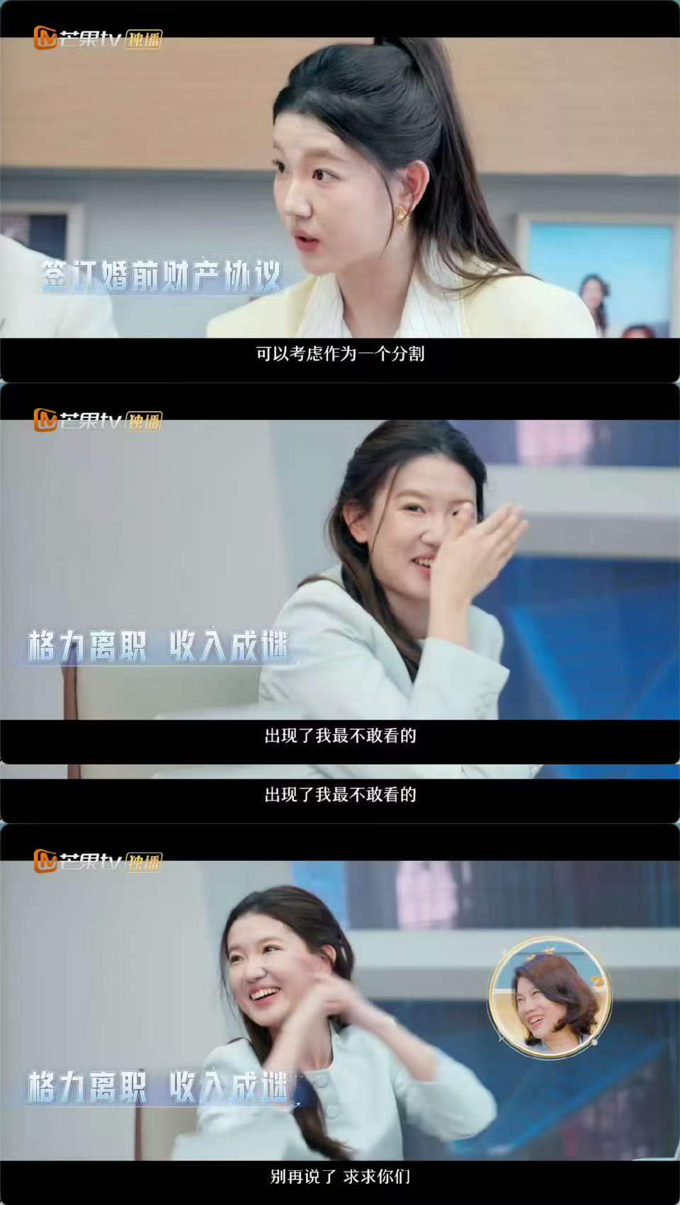 面对镜头,孟羽童大方透露,在决定参加新一季职场综艺后,她主动向董明珠进行了“报备”。更令人意外的是,她分享了一个充满生活气息的细节:她“自恋”地将自己精修后的节目海报发给了董总,而董明珠的回复并非外界想象中严肃的说教,也不是老年人常用的花朵表情包,而是一个时下流行的可爱小熊IP萌图。这段轻松的沟通,瞬间打破了长久以来外界对于两人关系紧张、甚至反目的猜测。
