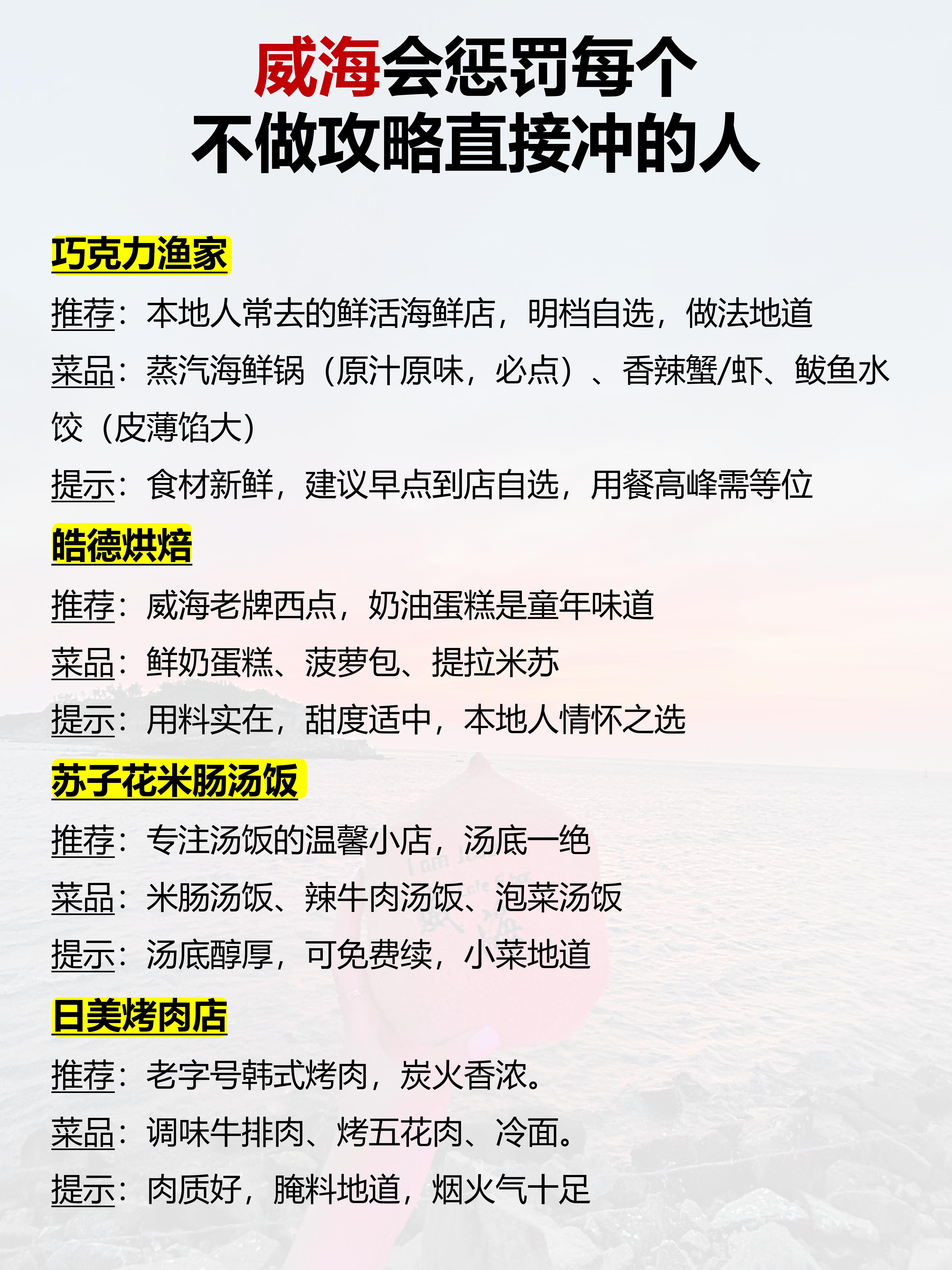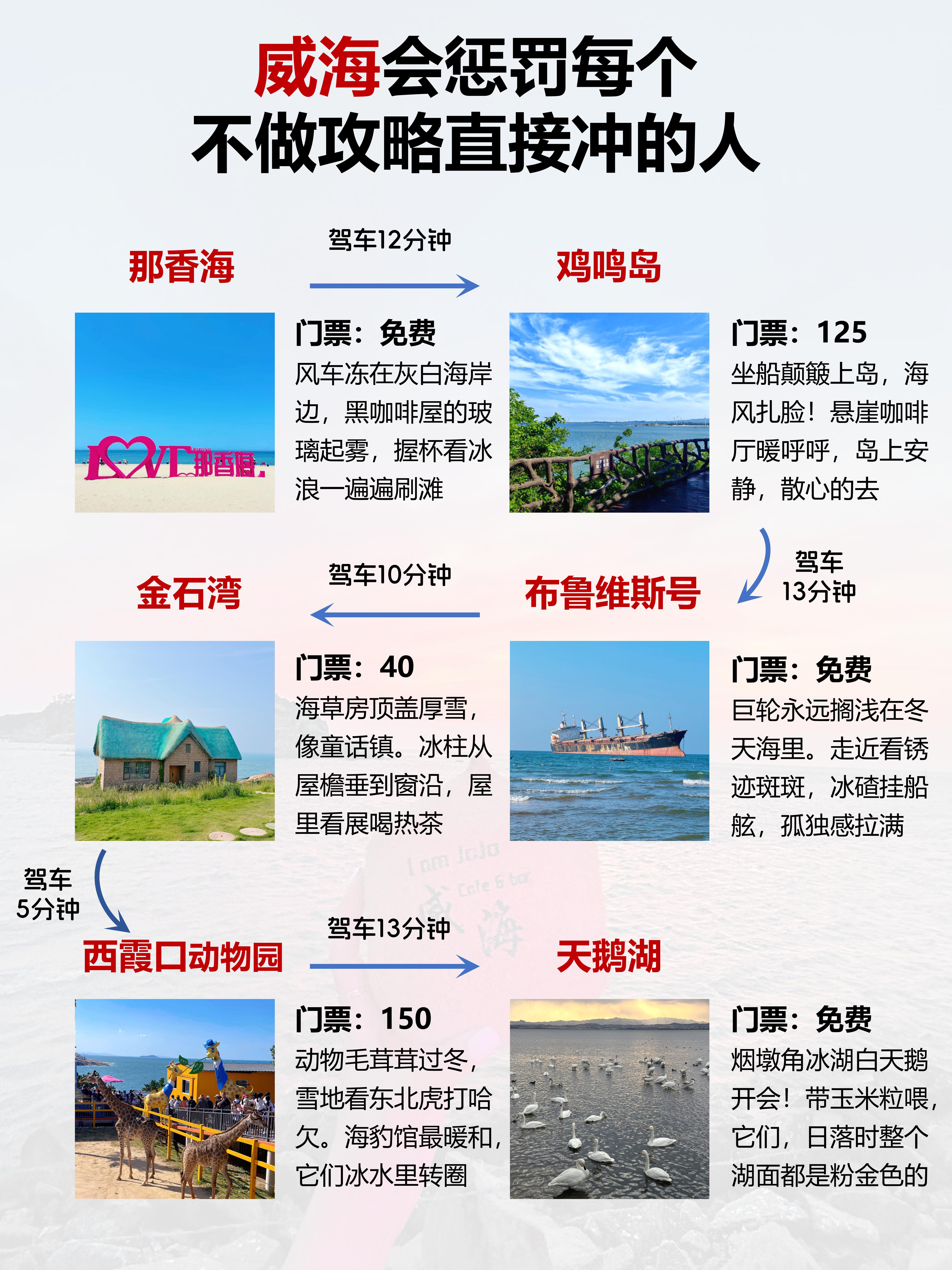 · 那香海:去荣成路上会经过。冬天的沙滩和孤独风车,有种空旷的末日美感。海边咖啡馆有落地窗,捧杯热拿铁看海,能发呆一下午