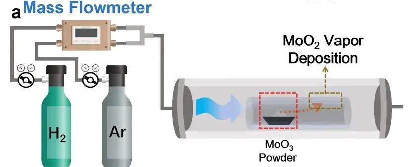 强还原剂v调节压力、温度和气体比例v例如,研究人员以MoO粉末为前驱体,在Ar-H气氛中以不同的H比例(从5%到20%)在900℃下氢气还原1h,得到了不同O浓度的MoO纳米片