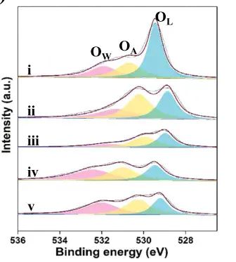 vX射线光电子能谱(XPS)、电子顺磁共振(EPR)、拉曼光谱、X射线吸收精细结构(XAFS)和透射电子显微镜(TEM)等XPS是一种常见的的表面成分分析技术通常,O 1S XPS谱可分解为三个特征峰,分别对应于(低结合能的OL峰)、(OA峰,结合能中等)和来(OW峰,高结合能),O位的浓度与OA峰的强度密切相关,但O浓度的量化是相对随机的。