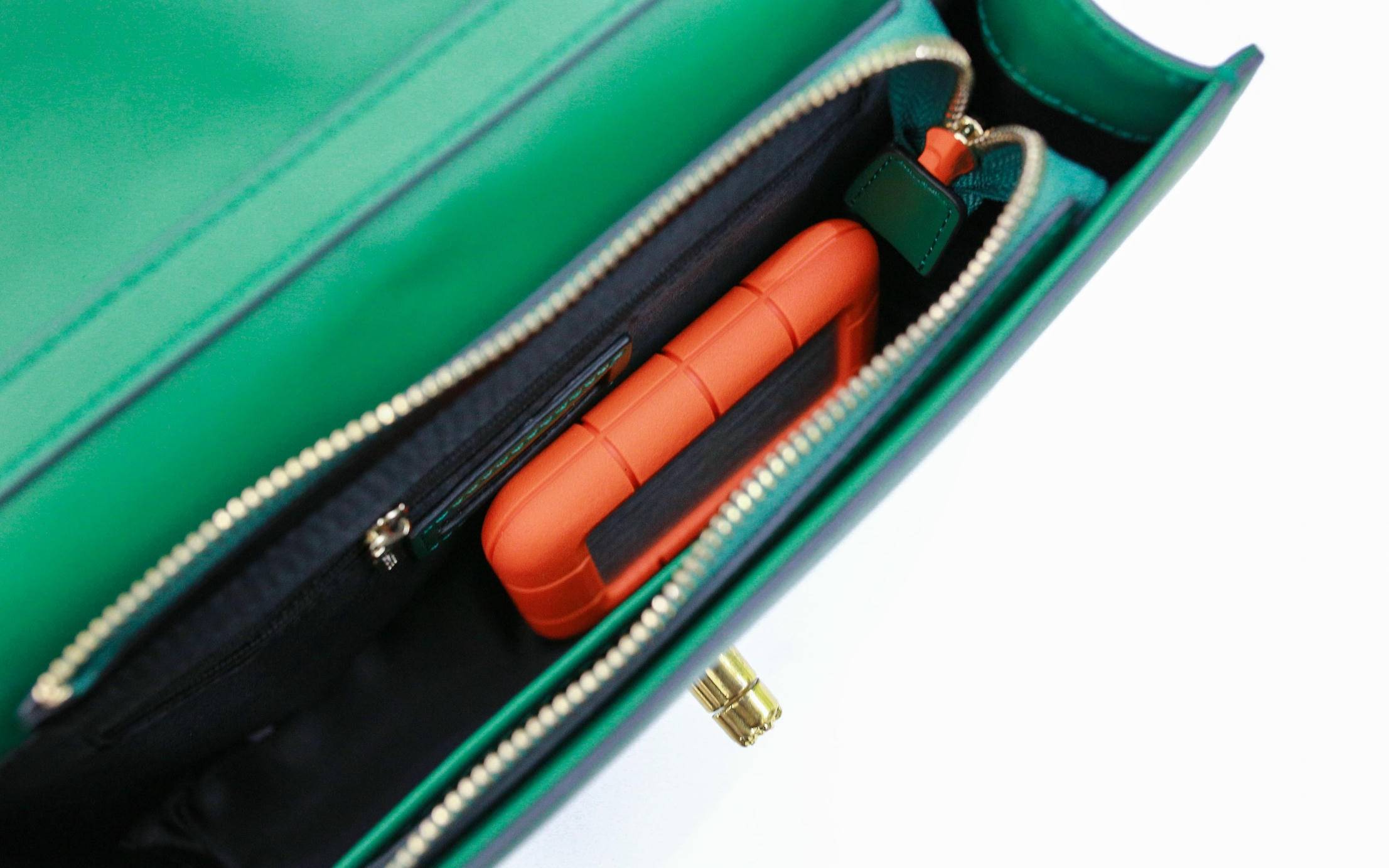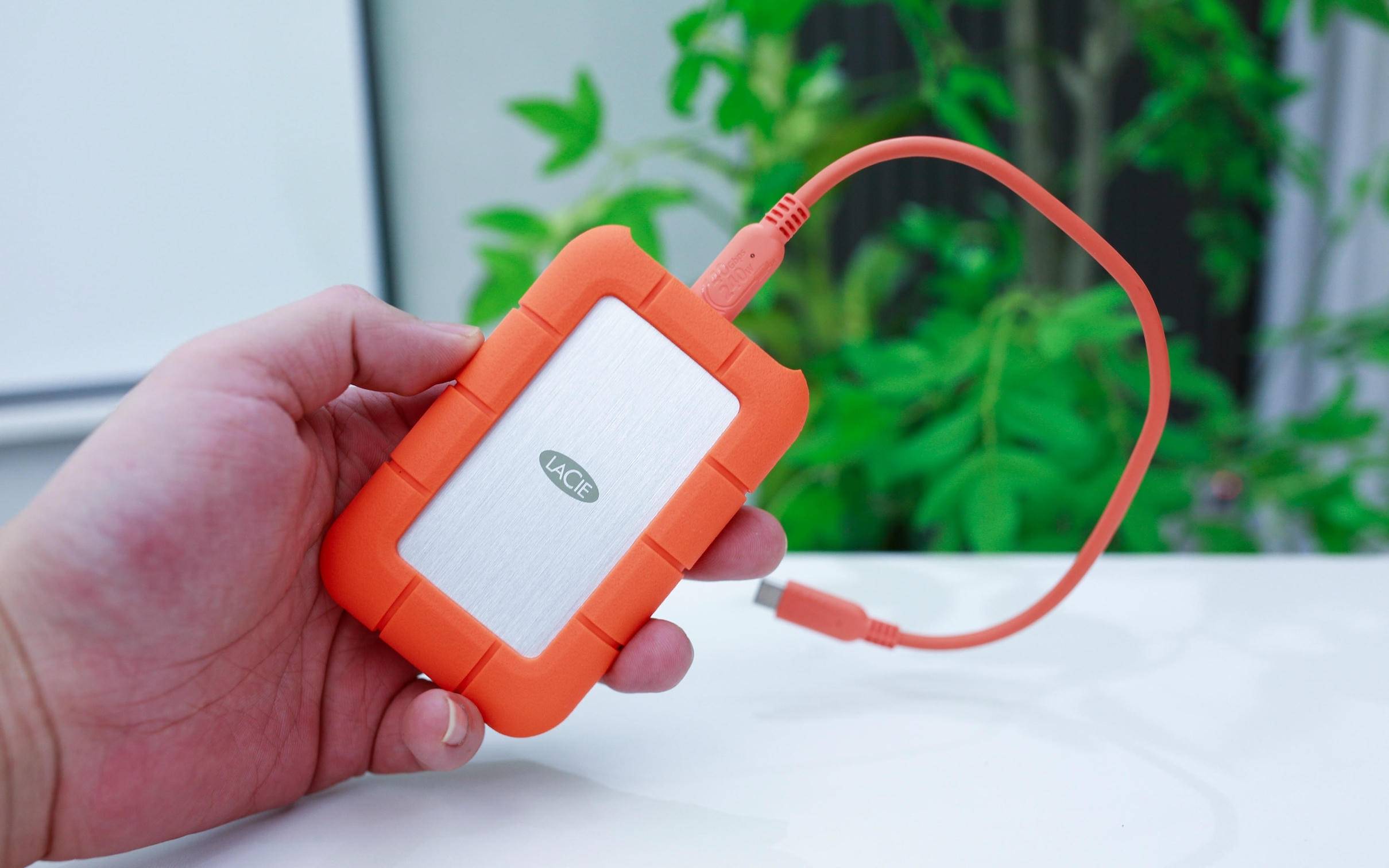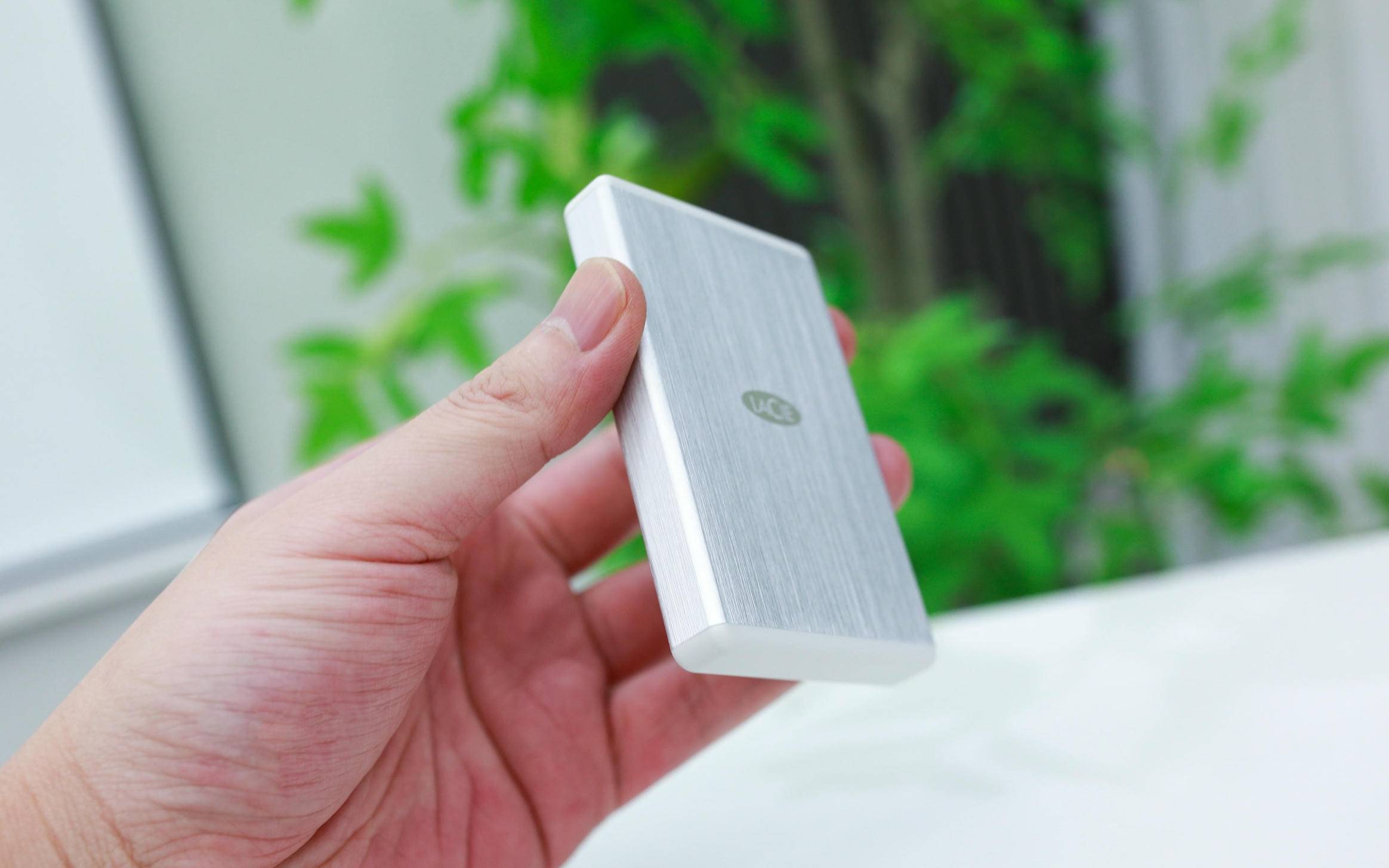 在体积和重量方面,LaCie Rugged SSD4 也明显优于传统移动机械硬盘。整机尺寸为 105mm × 67mm × 17mm,重量仅 108g,单手握持毫无压力。橡胶保护套表面摩擦力很强,拿在手里不容易滑脱,放进相机包或背包侧袋也几乎不占空间。对于需要频繁外出创作的人来说,这种“随手就能带走”的便携性非常重要。