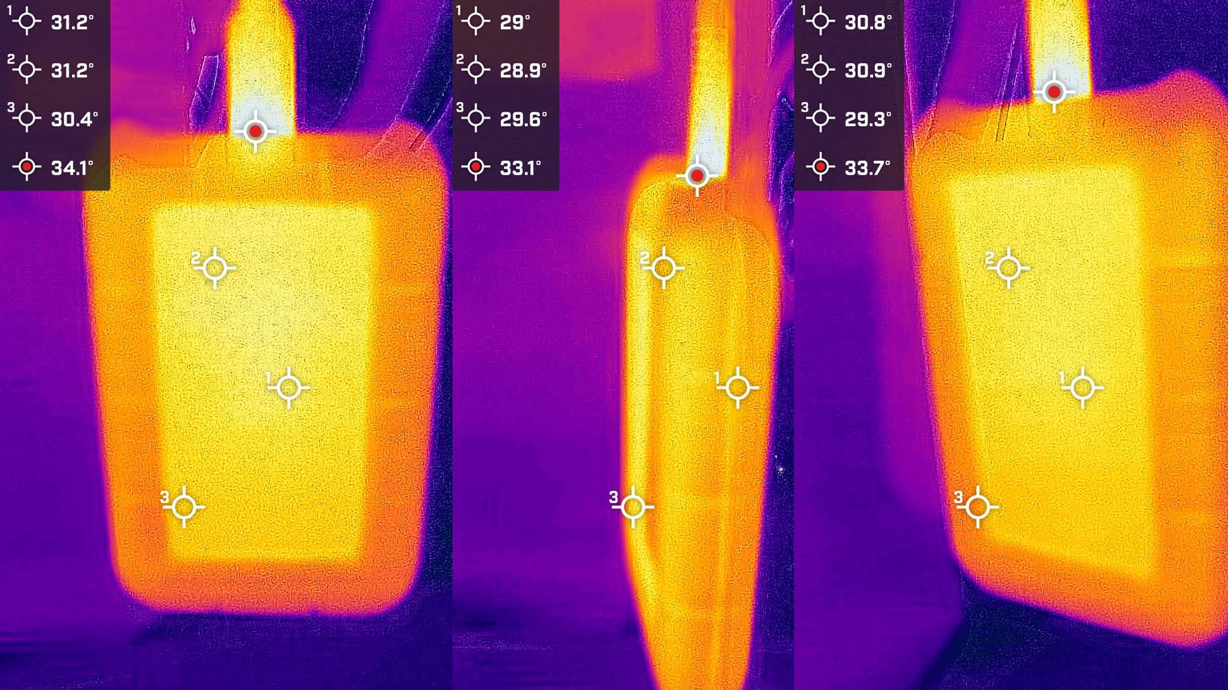 在整个测速过程中,我持续监控了硬盘温度,LaCie Rugged SSD4 全程没有出现常见的过热降速问题,性能输出始终保持稳定。测试时用手触摸金属外壳,只是轻微温热,完全不烫手,正反面温度基本维持在 30℃ 左右,接口位置的最高温度也仅约 34℃。这样的温控表现,说明它并不是靠短时间冲高速度、随后“强行刹车”来维持安全,而是通过扎实的结构与散热设计,保证持续稳定的性能输出。无论是电脑、手机之间的大文件拷贝,还是连接相机进行长时间视频内录,日常使用基本不用担心因过热而降速,这种稳定感正是专业存储最重要的价值所在。