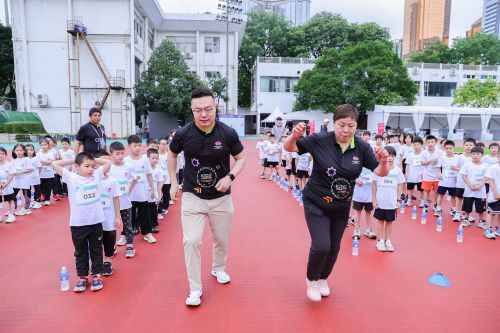 我国顶级少儿田径专家章碧玉、世界田联少儿田径讲师夏朝宸带领孩子们热身