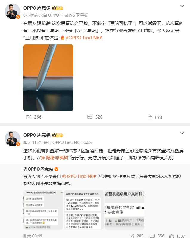 周意保还说了OPPO Find N6连哈苏2亿超清四摄也安排上了