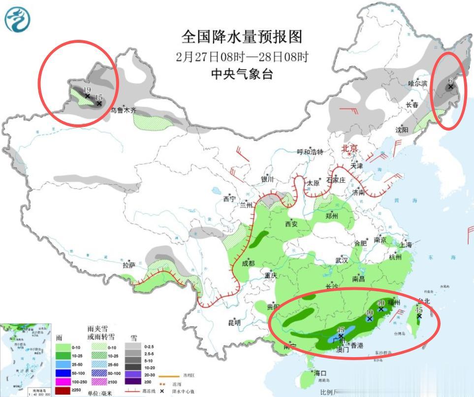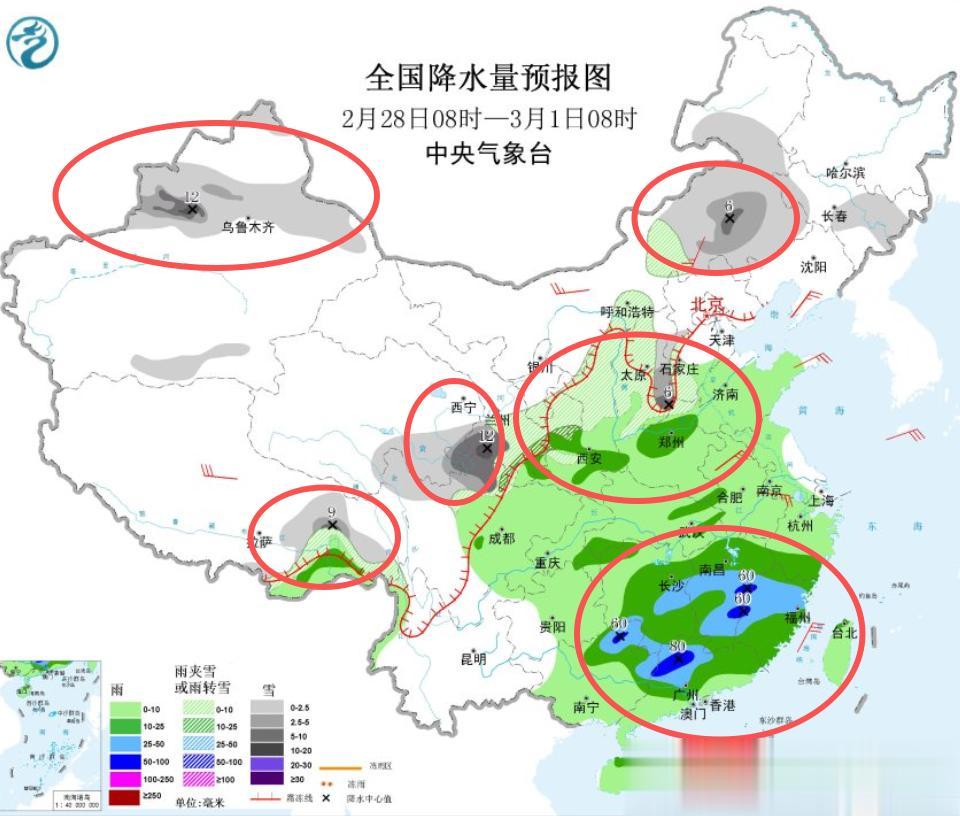 2月28日,2月份的最后一天,这轮降雨雪也达到了最强模式,随着气温的变化,内蒙古的东部、山西、河北、甘肃、新疆西部、西藏东南部等地都会出现降雪或者雨夹雪天气,以上的部分地区,还会出现大雪天气。