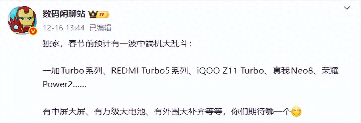 先是红米 Turbo 5 系列跟荣耀 Power 2 !