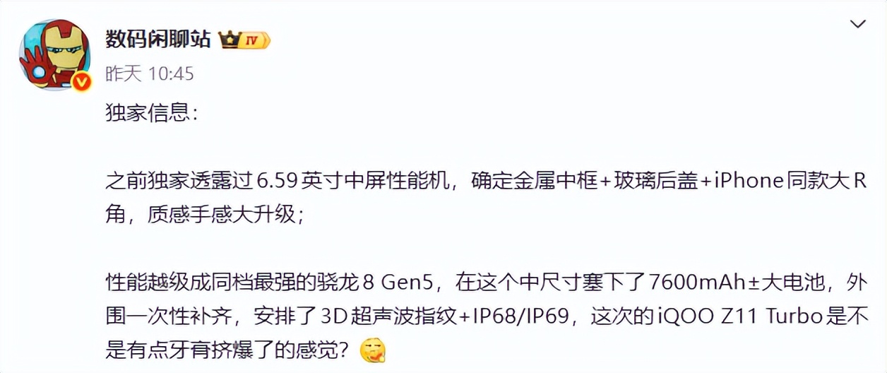 转到另一位 “ Turbo ” —— iQOO Z11 Turbo 这边!