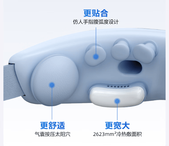 在使用体验上,K7主打冷热敷结合气囊按摩和点振放松,可以针对长时间用眼后的酸胀、干涩和紧绷感进行舒缓。戴上之后,按摩节奏比较温和,不会有压迫感,很适合下班后、睡前或者休息时间使用。冷热交替的设计,也让放松过程更完整,不只是“按一按”,而是一步步把眼周状态慢慢放松下来,整体体验更像日常护理而不是单一功能。