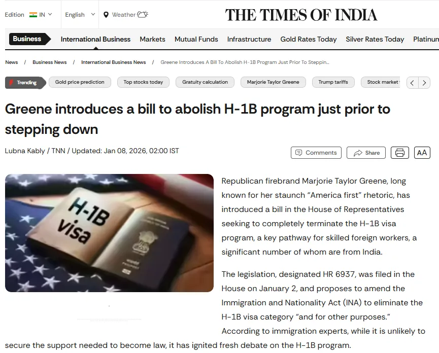 虽说这项法案最终成为法律的可能性微乎其微,但一旦通过,无疑会给那些怀揣赴美工作梦想的印度公民带来巨大影响。