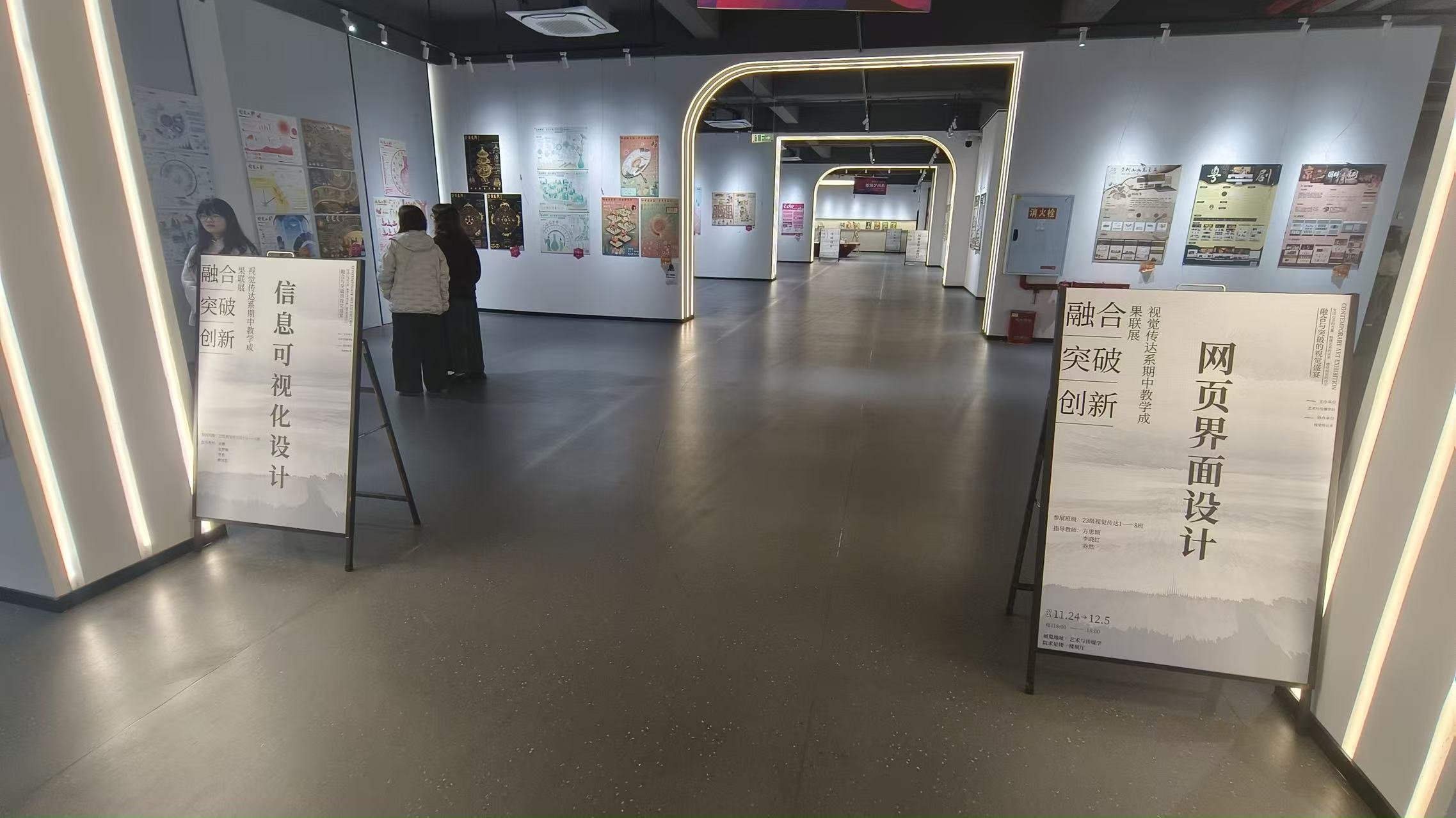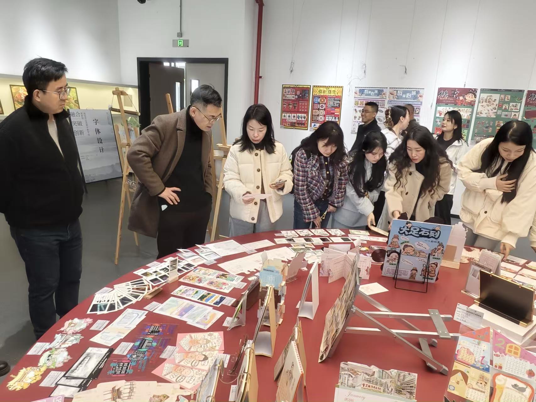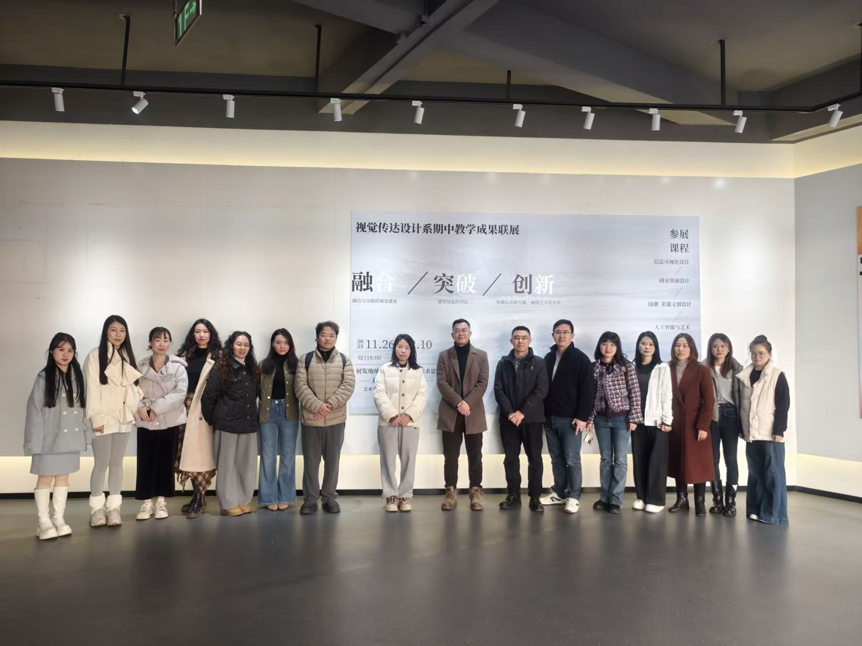 11月27日13时,艺术与传媒学院视觉传达系期中教学成果联展在巴南校区隆重开展。本次联展以“融合、突破、创新”为主题,集中呈现了人工智能与艺术、信息可视化设计、网页界面设计、印刷设计、国潮·非遗文创设计、字体设计等六门结课课程的教学成果,系部全体教师齐聚现场参观交流、合影留念,并严格按照评奖细则完成作品评审,院长蔡敏、院长助理邵文杰出席活动并指导。