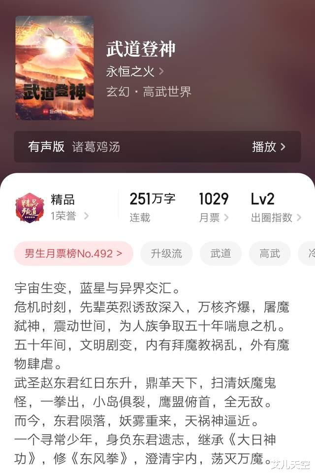 精品成绩,下本小说永恒之火打算写无敌流都市异能题材。
