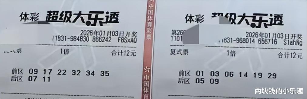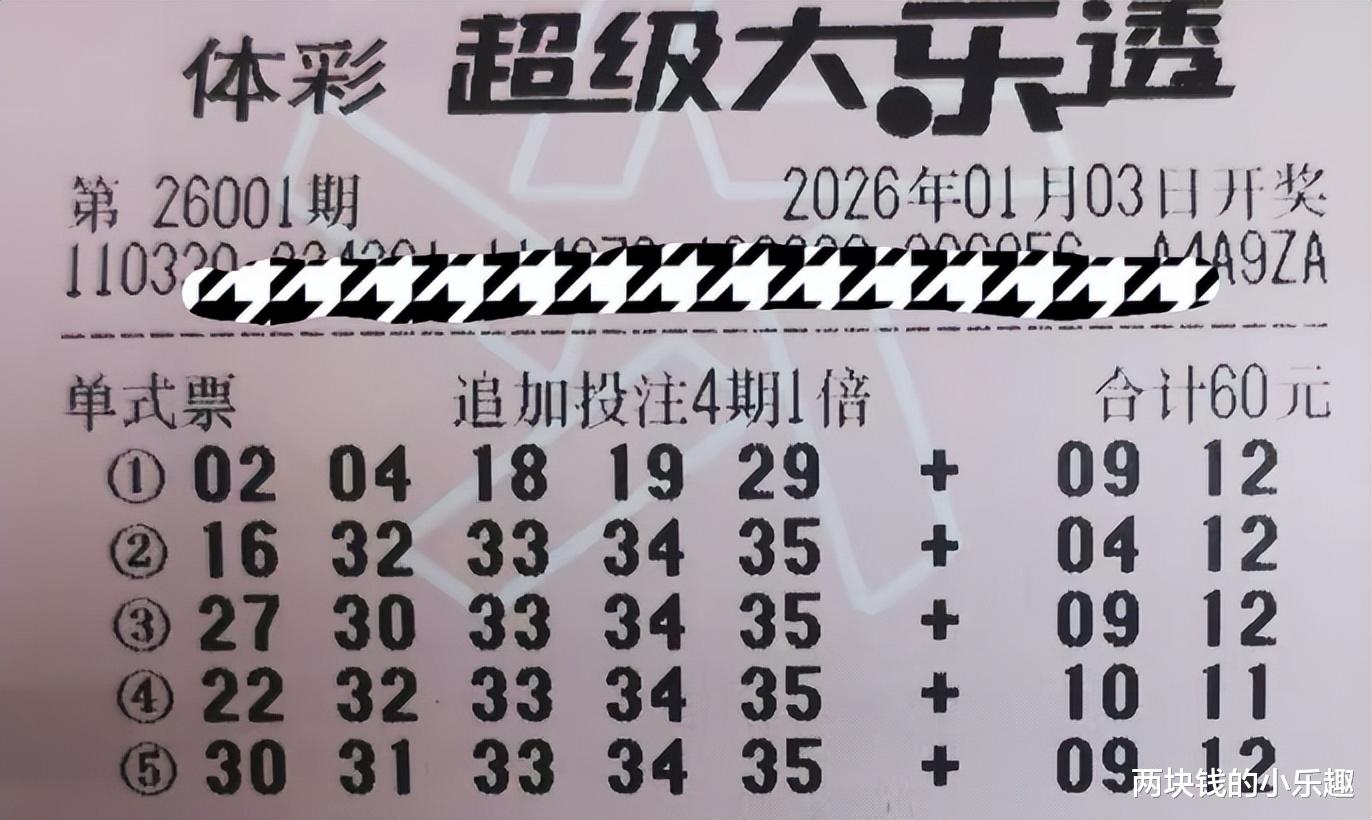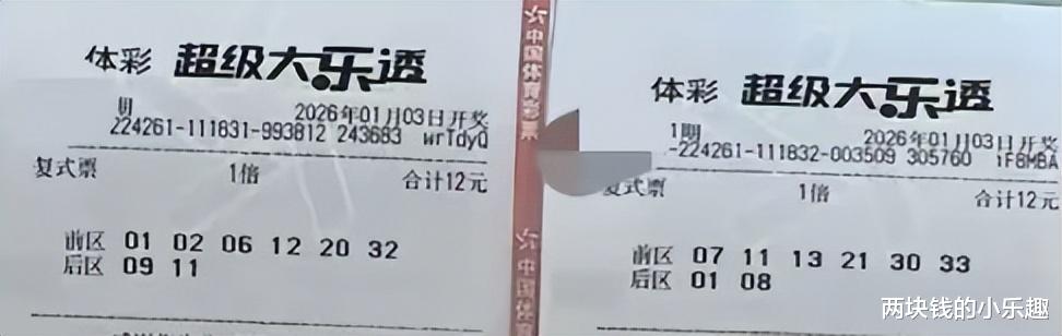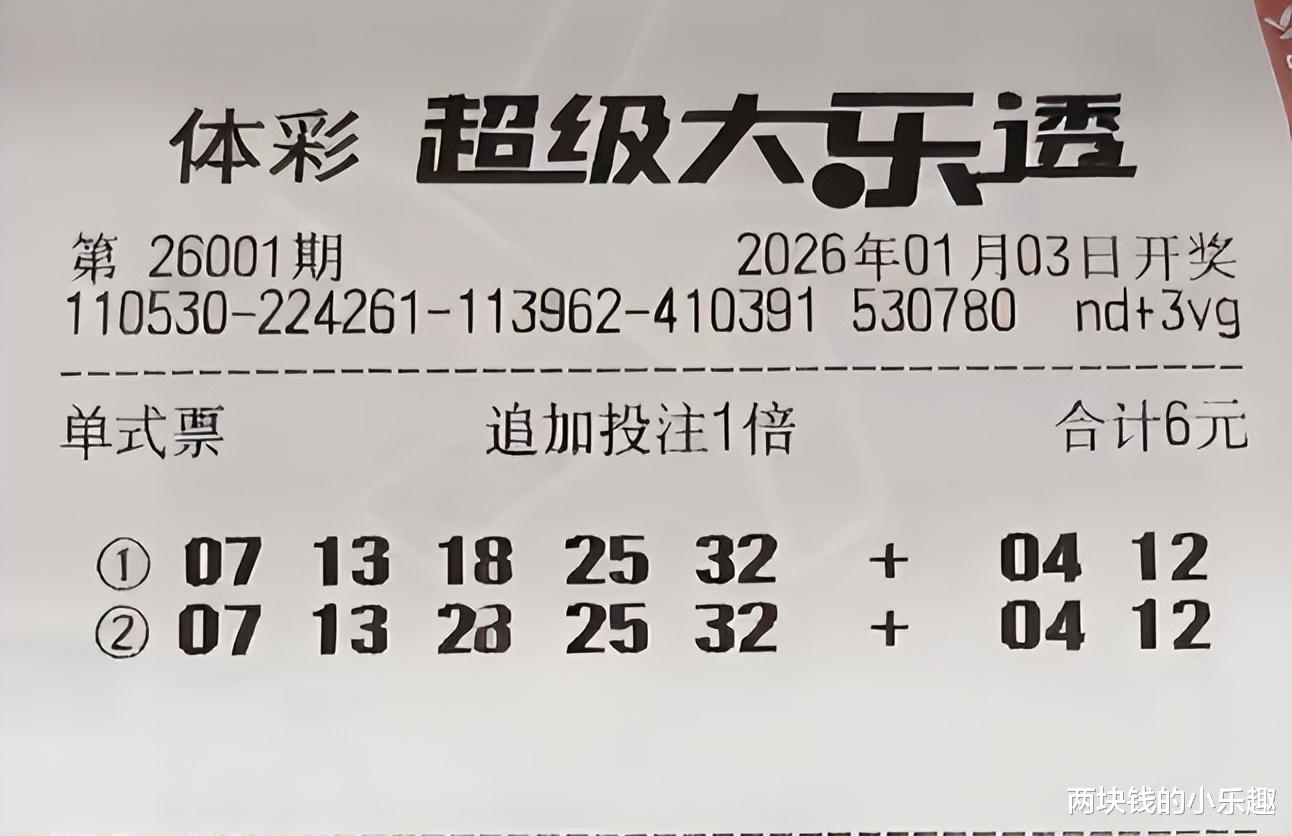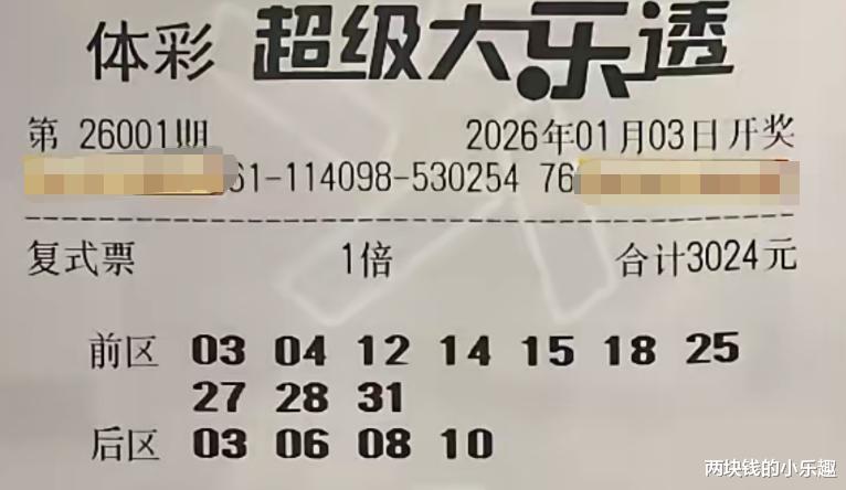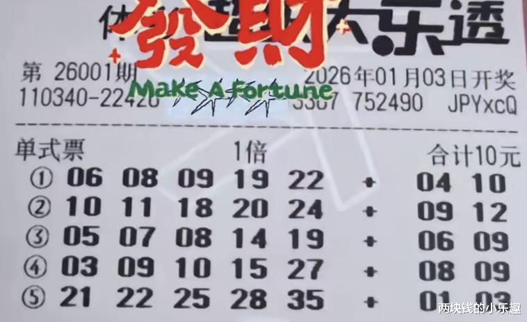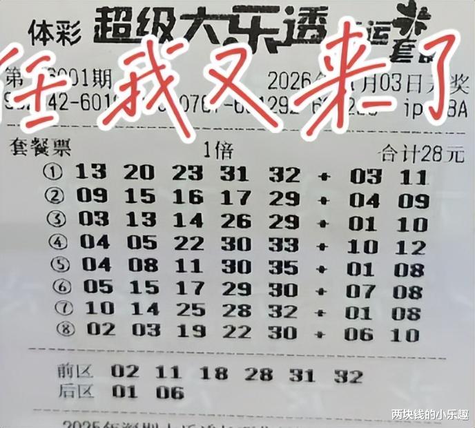 大家好,今天是1月3日,星期六,今晚大乐透第26001期将要开奖,这是2026的第一期,比较备受瞩目的一期,也是彩友们比较期待的一期,恰逢现在是元旦假期,时间比较充裕,所以彩友早就研究好本期的方向并出了票,下面请大家开始欣赏: