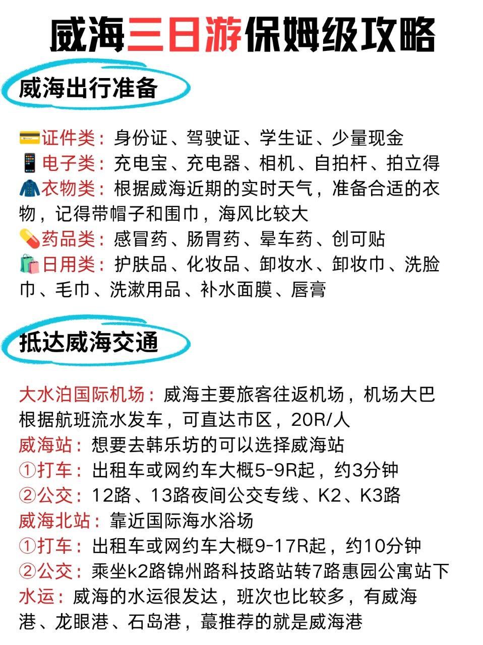 威海三日旅行,详细攻略