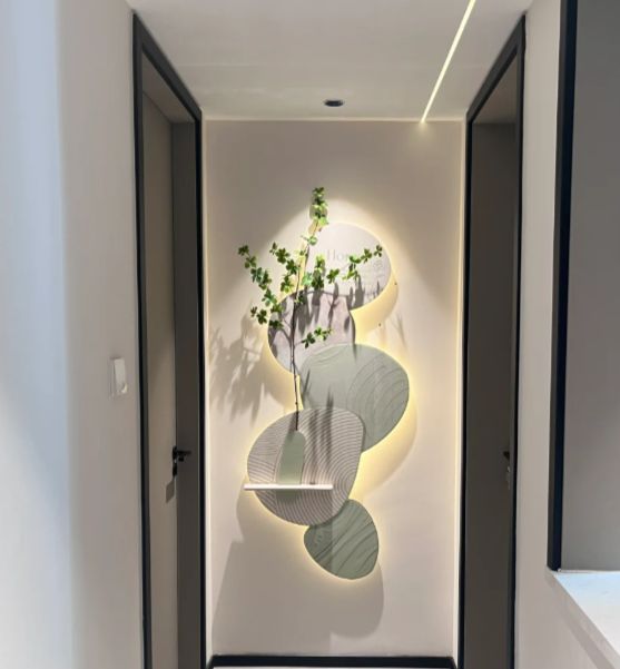 原本被阴影吞噬的白墙,现在被一道温润的光晕轻轻擦亮。光不是从上往下直射,而是贴着墙面的肌理缓缓流淌,像清晨薄雾里的第一缕阳光。墙不再是冰冷的边界,而成了可以阅读的画布。走廊尽头那幅朋友送的小幅水彩,原本无人留意,现在被光勾勒出柔和的轮廓——画中那些淡紫色的鸢尾,仿佛在微光里呼吸。走在这样的光里,脚步声都不自觉地放轻了,像是在参观某个安静的小型画廊。而你的家,就是那个美术馆。