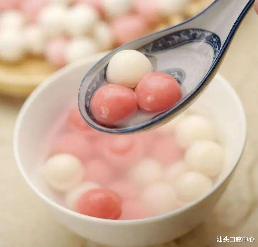 冬节丸虽好,但不能贪多。黏性大的糯米会牢牢粘在牙齿缝隙和牙面上,甜食会被口腔细菌分解产生酸性物质,腐蚀牙釉质,时间长了就容易长蛀牙。建议大家吃的时候控制分量,吃完后不要马上刷牙,避免磨损被甜食软化的牙釉质,可以先用温水漱口,清除口腔内的食物残渣,半小时后再刷牙。