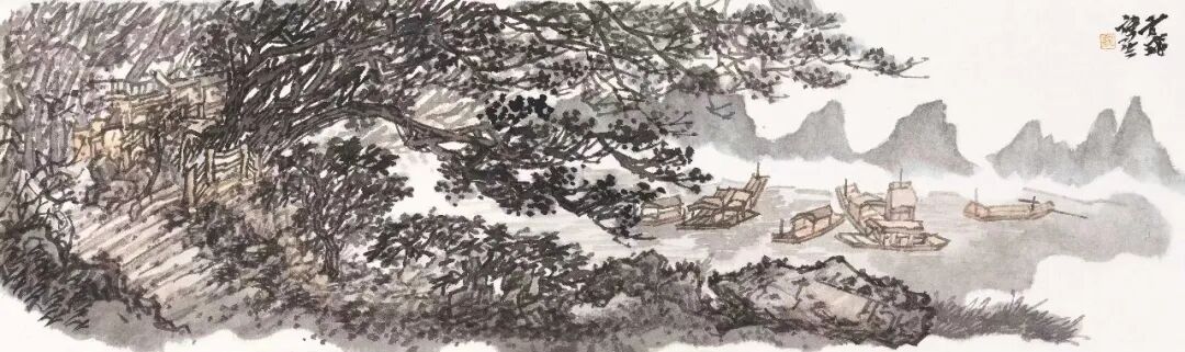 乙巳桂林写生之一 28×86cm 纸本水墨