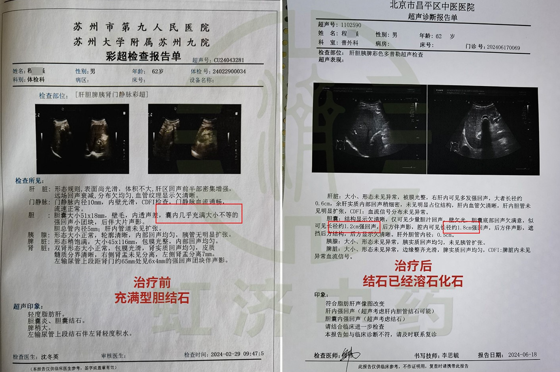 【康复分享】治病就是实事求是,有没有效果,B超检查为准。山西五台山的程师傅,充满型结石,两个疗程治疗下来,结石溶石化石完