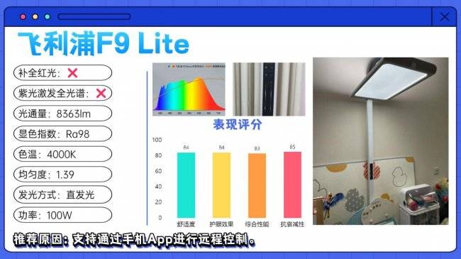 护眼大路灯第六名:飞利浦F9 Lite;支持通过手机App进行远程控制。