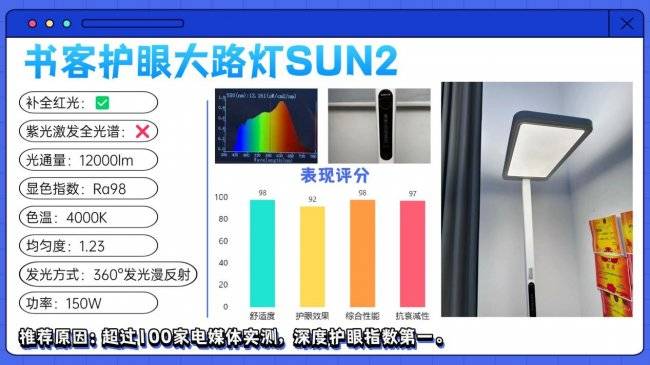 护眼大路灯第一名:书客护眼大路灯SUN2;获得了众多宝妈们、眼科医生和专业媒体的好评,公认“中高端价位护眼性能最硬核的护眼大路灯”常年霸榜口碑销量冠军之位!