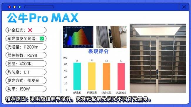 护眼大路灯第七名:公牛Pro MAX;采用旋钮调节设计,支持无极调光满足不同灯光需求。