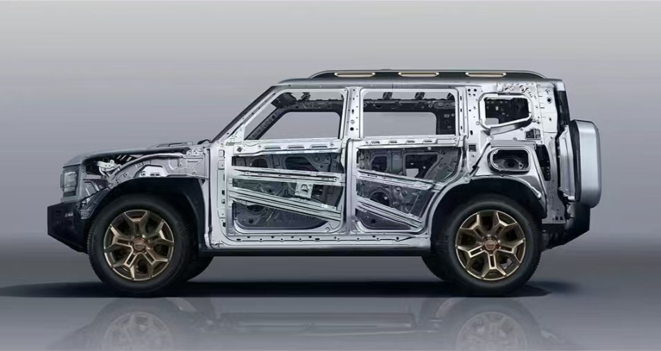 车身安全方面,这款车做得也特别到位,采用的是潜水艇级的车身安全设计。车身是笼式结构,还有一体式的双门环,高强度钢的占比高达80%,车身的刚性特别强。扭转刚度能达到32000N·m/deg,动态极限更高,就算是在越野的时候遇到颠簸或者碰撞,车身的形变也会特别少,能很好地保护车内人员的安全。底盘方面,有7块钢制护板,就像给底盘穿了一件铠甲一样,能起到装甲级的防护作用,越野的时候不用担心底盘被磕碰。潜水艇级车身加装甲底盘,为越野出行提供了全方位的安全保障。它的通过性,真的特别出色,完全能应对各种复杂的路况。接近角是28°,离去角是30°,涉水深度更是能达到700mm,不管是爬坡还是涉水,都不在话下。让我惊喜的是它的坦克转向功能,转弯半径低至4.785m,我开在山间的小道上,也能灵活地调头,不用担心转不过弯来。全路况高通过性加坦克转向,不管是山间小道还是泥泞土路,都能畅行无阻,让我很安心。