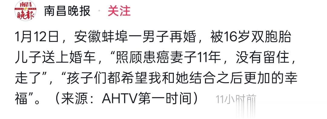 1月12日,安徽蚌埠一场特殊的婚礼引发网友关注。男子单身多年再婚,一对16岁的双胞胎儿子亲手将父亲送上了婚车,这背后的故事感人至深。